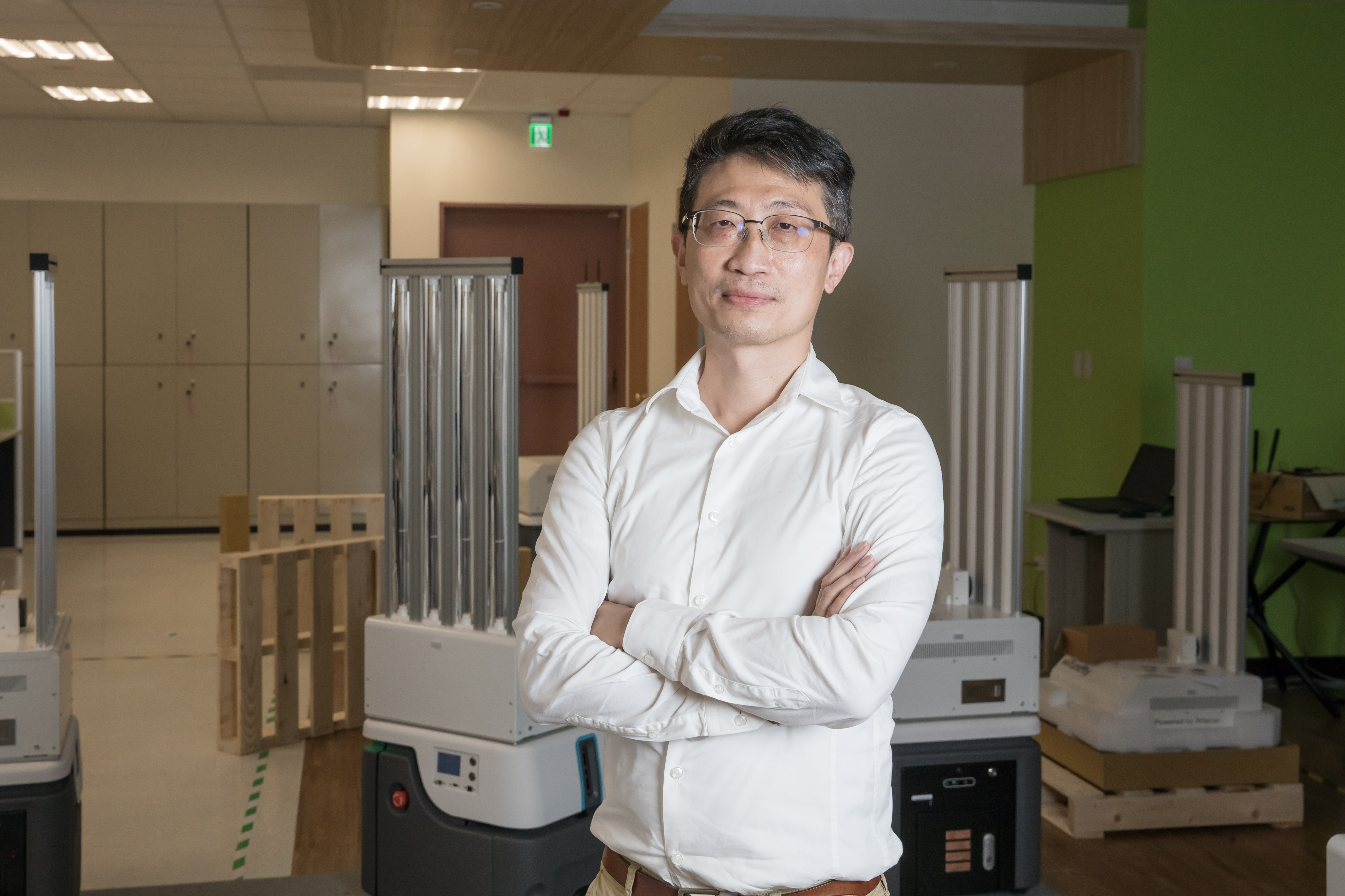 緯創開發的機器人分成上下兩部分,底層具備移動、導航、避障的功能,上層則依使用需求提供不同功能模組。比方,搭載UVC紫外線殺菌燈模組的消毒機器人,可在大家下班後依照排程時間進行消毒,並針對較多人員出入的主管辦公室延長停留時間,創造令人安心的工作環境。百貨商場裡,機器人不但能提供各項消費資訊,還能扮演路線引導的角色,為消費者帶來全新體驗。防疫期間,美食外送、電商宅配訂單大增,為避免人員接觸,機器人也可運送餐點、包裹,搭配身分驗證功能,可確保運送無誤。