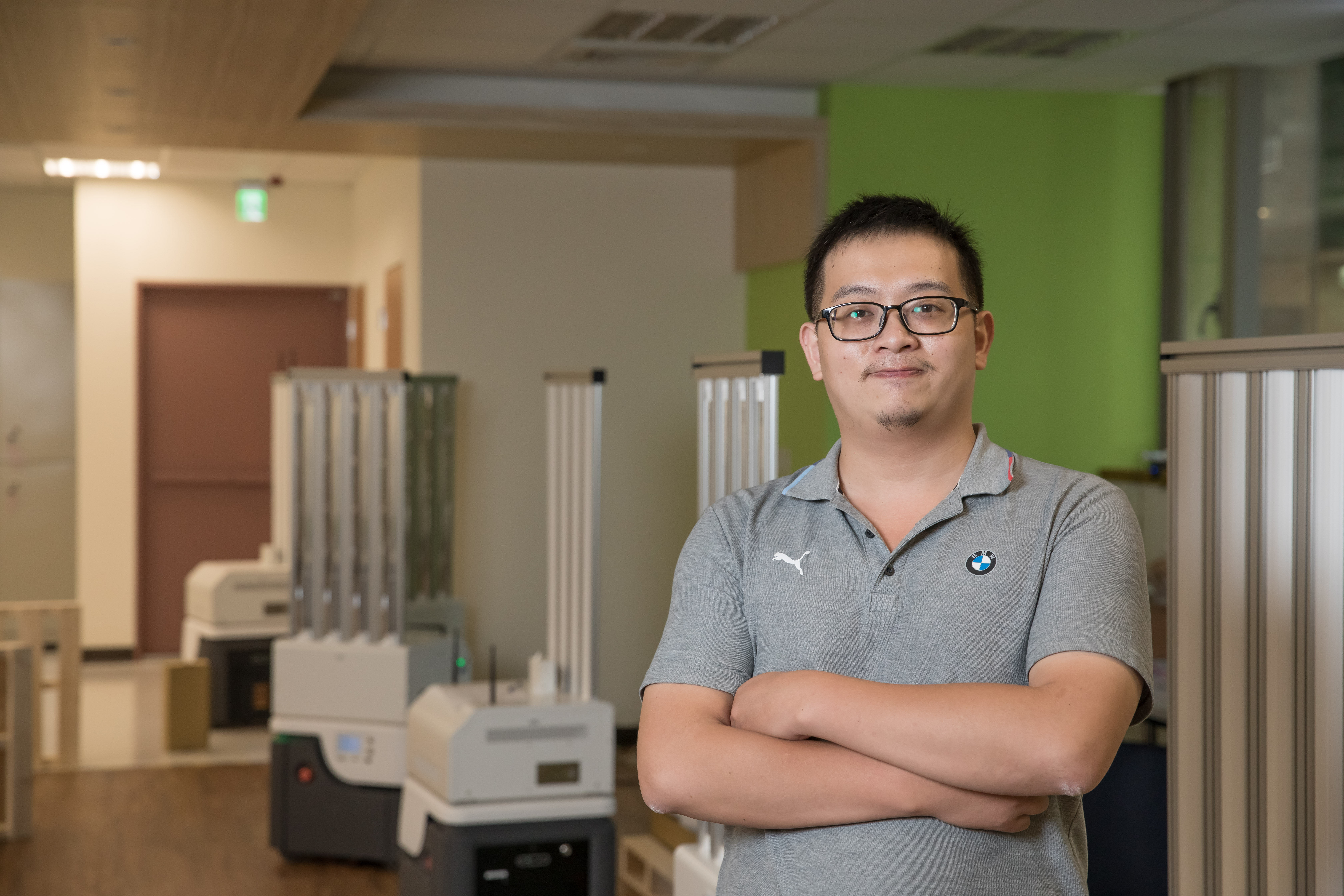 目前在緯創辦公大樓及外籍移工宿舍已經有消毒機器人進駐,剛開幕的桃園A19環球購物中心也採用了服務型機器人,就像移動的Kiosk,顧客可與機器人互動,並取得各種商場資訊。