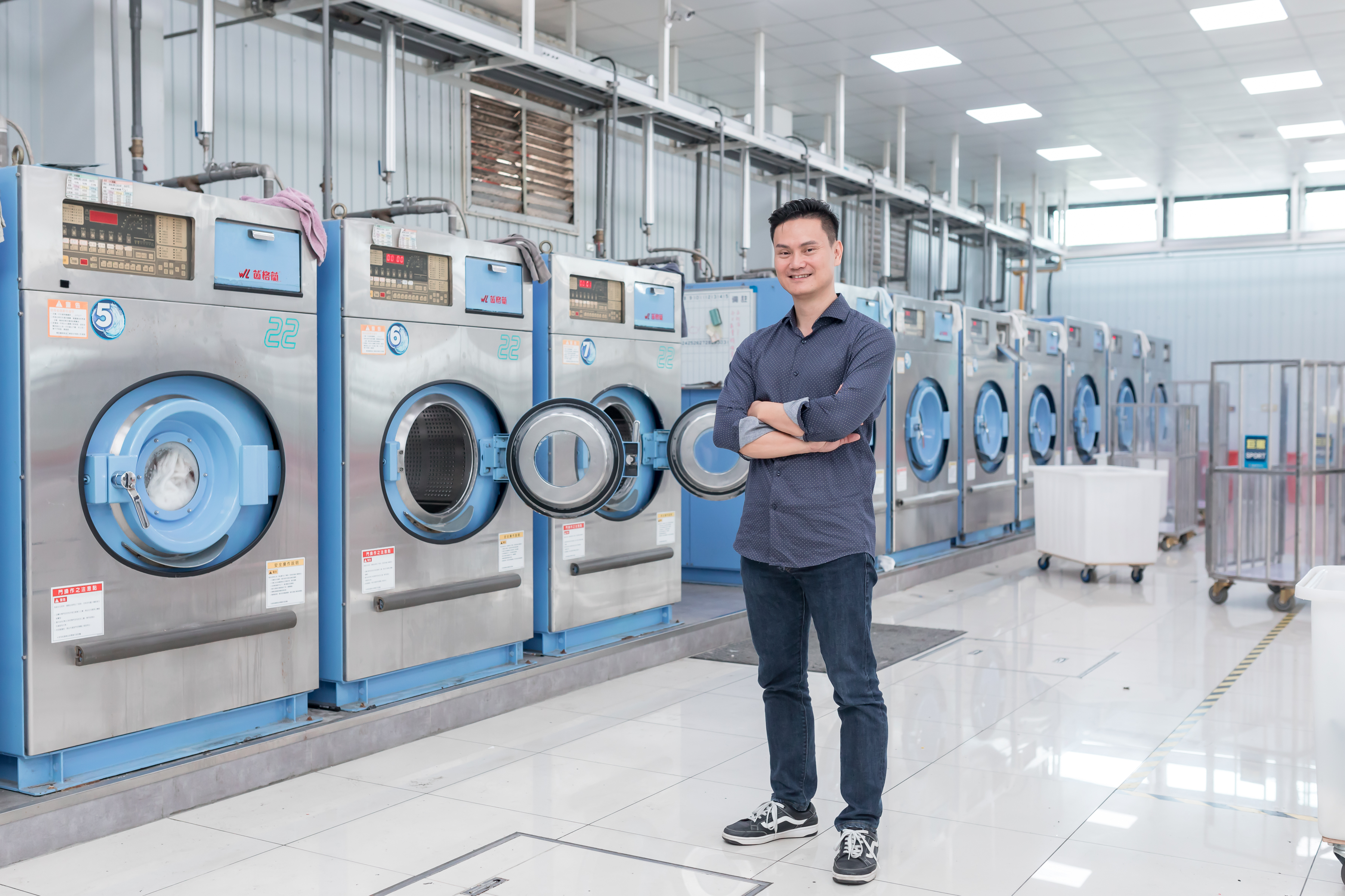 「希望從我們的廠開始去做,在台灣有第一間可視化的洗衣工廠。」亮麗專業洗衣總經理郭瀚文說。當年從洗衣店學徒開始做起,後來自行創業,進而建立連鎖體系,郭瀚文從事洗衣業31年來,一路看著行業的變化,好像沒什麼前景,中途也曾想過要離開。後來,他才發現原來自己可以改變這個環境,於是每年從店內擺設、經營方式到工廠管理慢慢逐步調整,希望顛覆大眾對洗衣業的傳統印象。